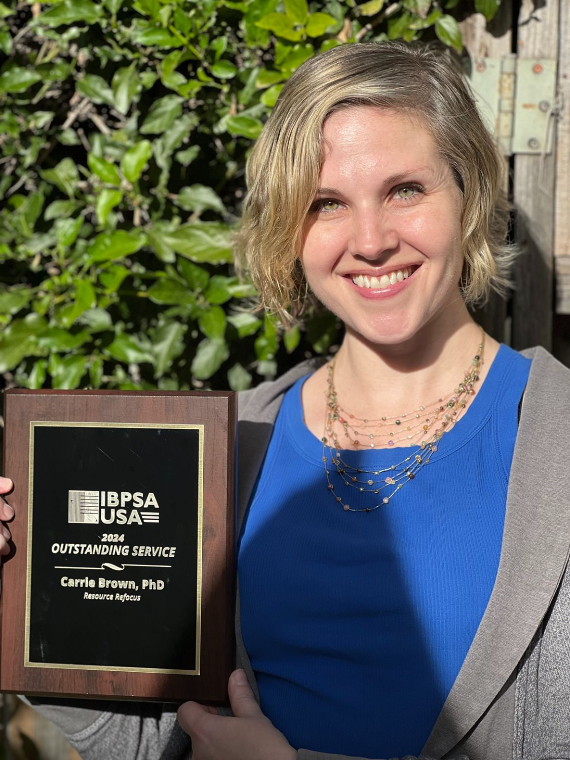 We would like to congratulate Carrie on receiving the IBPSA-USA Outstanding Service Award! This award recognizes one or more individuals, groups or firms who have provided outstanding leadership, mentoring, and volunteering in the promotion of building simulation through research, education, practice, or advocacy.
